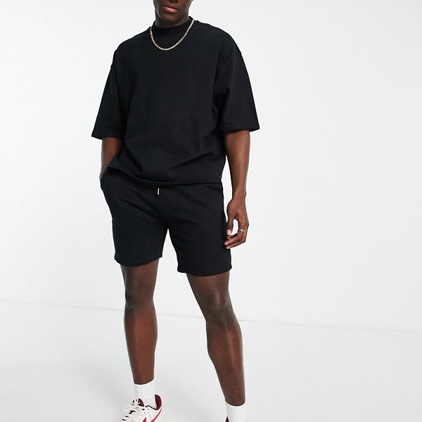 エイソス ASOS asos ASOS DESIGNトラックスーツ、半袖スウェットシャツと黒のスリムショーツ トップス メンズ 男性 インポートブランド 小さいサイズから大きいサイズまで