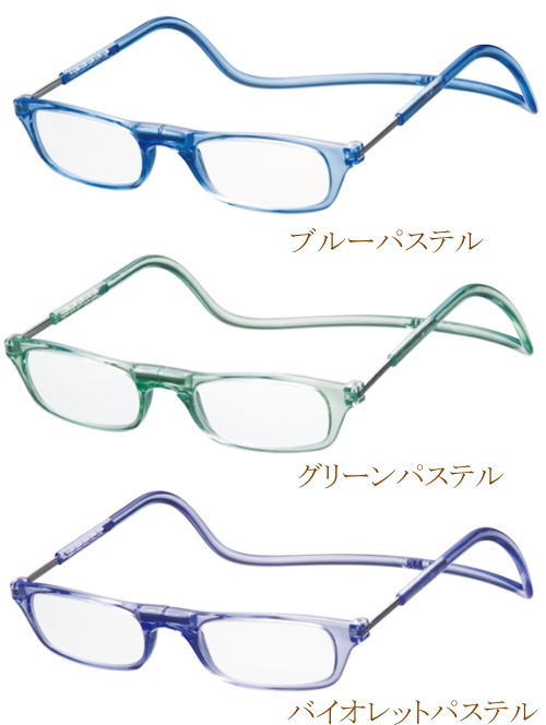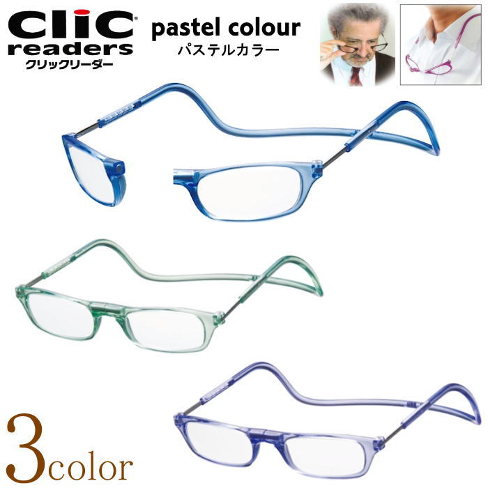 [選べる3色]老眼鏡 正規品 クリックリーダー パステルカラー CliC readers 磁石 首掛け おしゃれ シニアグラス リーディンググラス 男性用 女性用 マグネット 開閉式 読書用メガネ 辞書 新聞 40代 50代 カジュアル 母の日 父の日 敬老の日 贈り物 プレゼント