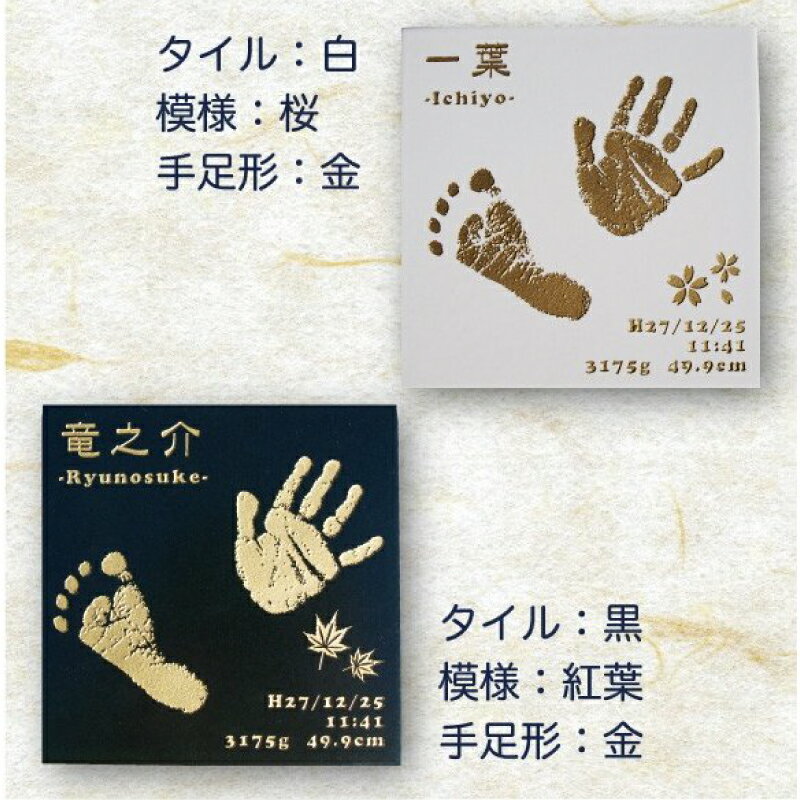 出産祝い 内祝い メモリアル 誕生祝い 赤ちゃん 手形 足形 タイル 彫刻 「凛-Rin- 150」 出産祝いや内祝いにかわいいタイルに手形彫刻 1