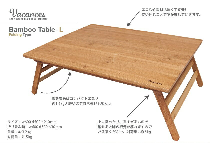 お正月 初売り 初詣 お年玉 成人の日 成人式 節分 バレンタインデー 桃の節句(ひなまつり) ホワイトデー 春物入荷 お花見 入学式 ゴールデンウィーク 母の日 衣替え 父の日 梅雨 夏物入荷 山開き 海開き 七夕 お中元 暑中お見舞い 夏休み 花火大会 盆踊り 夏祭り 秋物入荷 防災 敬老の日 ハロウィン 運動会 文化祭 学園祭 お歳暮 冬物入荷 クリスマス プレゼント 贈物 贈り物 ギフト お返し 引っ越し祝い 新生活 お祝い 内祝い 出産祝い 引っ越し祝い 引越し祝い 引越祝い 新築祝い 成人祝い 卒業祝い 就職祝い 合格祝い 入園祝い 入学祝い 進学祝い 結婚祝い 婚約祝い 退院祝い ボーナス祝い 七五三祝い 退職祝い 還暦祝い 長寿祝い 誕生日 お誕生日 大掃除ITEM DETAILSブランド名SPICE(スパイス)商品名バカンス 折りたたみバンブーローテーブル Lサイズ商品説明・竹でつくられた使い勝手の良いシンプルなローテーブル。