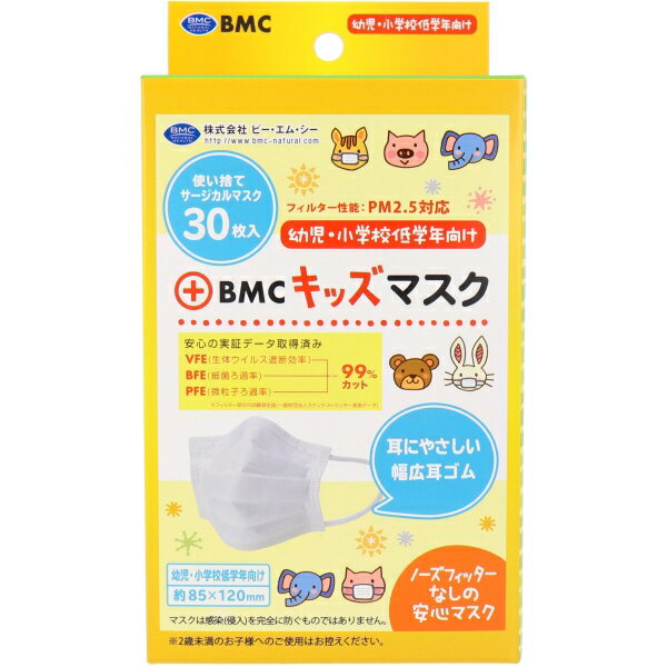 BMC キッズマスク 使い捨てサージカルマスク 幼児・小学校低学年向け 30枚入 [キャンセル・変更・返品不可]
