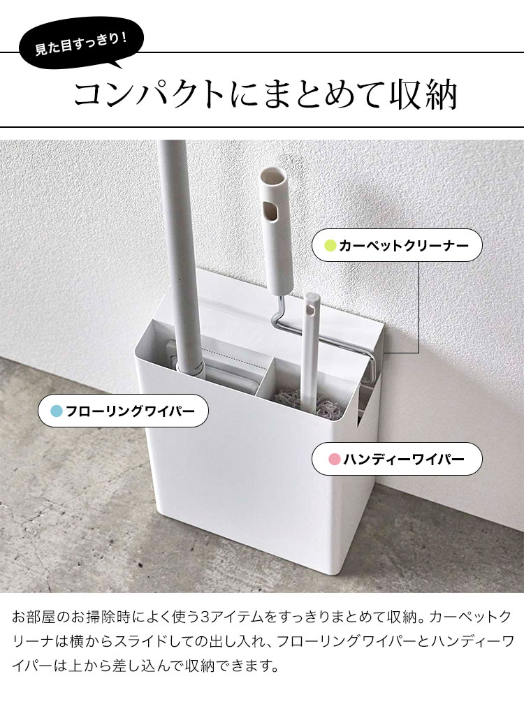 フロアワイパー、ハンディーワイパー、コロコロクリーナー 3点を一括で収納することができます。