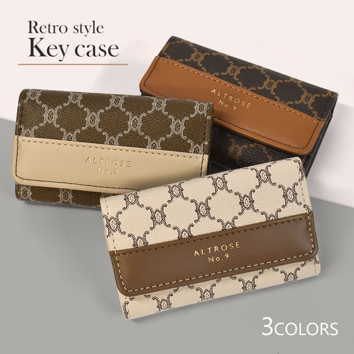 フェイクレザー 総柄 キーケース /レディース 女性 カード カード収納 カード入れ カードケース パスケース 定期入れ 一緒 4連 コンパクト スリム 大人 可愛い かわいい おしゃれ オシャレ 大人っぽい レトロ 合成皮革 合皮 革 レザー ベージュ キャメル ブラウン/ r