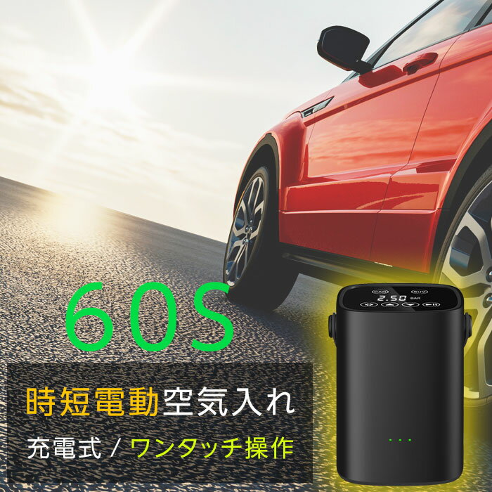 ポイント5倍! 空気入れ 電動 自動車用 急速 60秒 USB 充電式 コードレス 自転車 カー タイヤ 空気入れ 気温感知機能 アコンプレッサー スマート停止 プール ボール 車 自転車 英式 米式 仏式 バイク 浮き輪 風船 対応