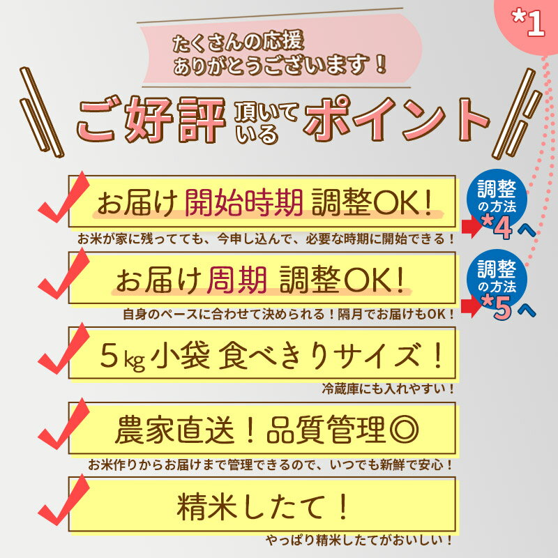 返礼品詳細 名称 精米(白米)または玄米または精米(無洗米) 内容量 25kg(5kg×5袋) ×10ヶ月 産地 秋田県仙北市 品種/産年/使用割合 あきたこまち/令和3年産または令和4年産/単一原料米 精米年月日 (精米の場合) 別途ラベルに記載 調製年月日 (玄米の場合) 別途ラベルに記載 保存方法 常温保存 配送方法 常温配送 備考 ※パッケージは精米種別により異なります。