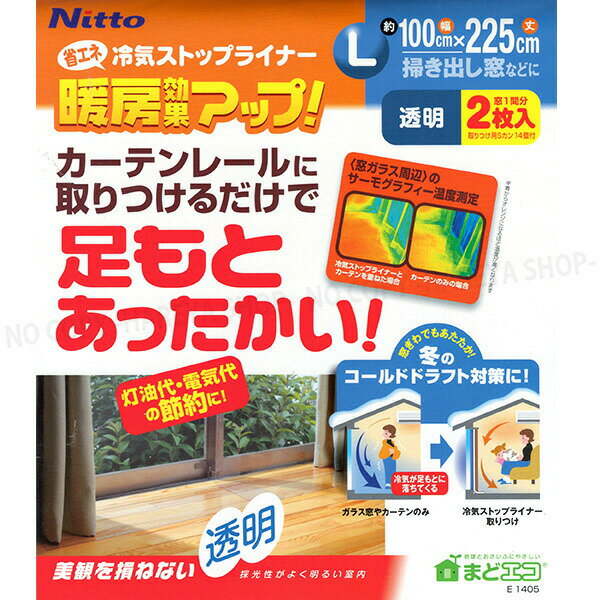 冷気ストップライナー 透明Lサイズ 【2袋までメール便OK!】 まどエコシリーズ 100×225cm掃出し窓に カーテンレールに取付け 窓からの冷気防止! 飛沫感染防止シートとして ニトムズ E1405
