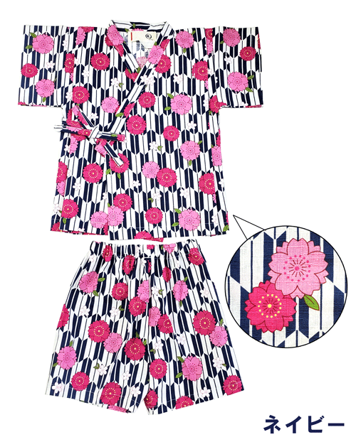 子供甚平 甚平 女の子 甚平子供 E.T.K 桜&矢絣柄 レッド ネイビー 80cm 90cm 95cm 100cm 110cm 120cm 日本製 上質な綿100% 花火大会 夏まつり 夏イベント 夕涼み お遊戯会 送料無料!(同梱OK!)※沖縄県・離島は9800円以上購入で送料無料!