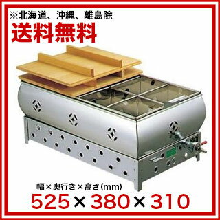 商品の仕様●外寸(mm):525×380×H310 鍋:420×360×95 ●容量:13L●材質:18-8ステンレス 木 ●消費電力:ガス消費量(kw/h):3.26■● 6ツ仕切● ガス接続口:ゴム管3分口(φ9.5)※商品画像はイメージです。