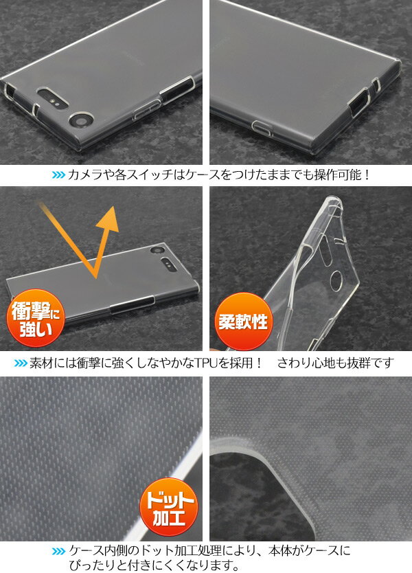 しなやかで衝撃に強い!Xperia XZ1 (SO-01K/SOV36/701SO)用ソフトクリアケース シンプルな透明のソフトクリアケース 素材は適度な硬さと弾力性をあわせ持つTPUを採用。