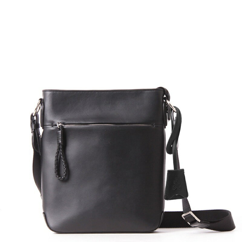 ウォータープルーフ加工 撥水レザー 縦型ショルダーバッグ 本体素材には品種ゼブー牛(こぶ牛)にウォータープルーフ(撥水)加工を施したスムース革を使用しております。