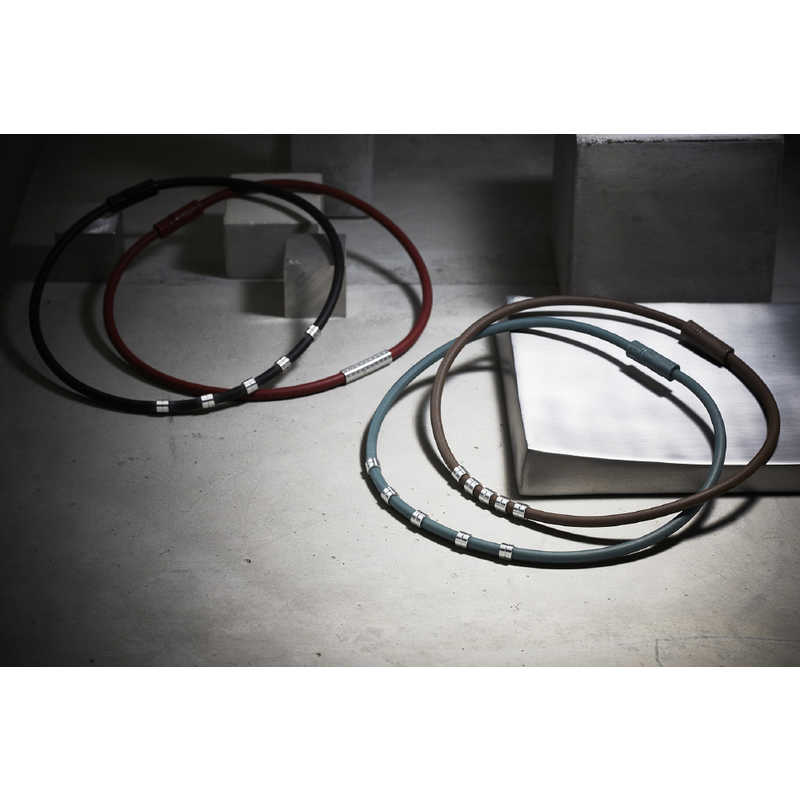 ●140mT(1400G)x6個の希土類永久磁石を首周りに添うようにシリコンに内蔵し、スッキリと軽い装着感で、首 肩の血行を改善し、筋肉のコリを緩和します。